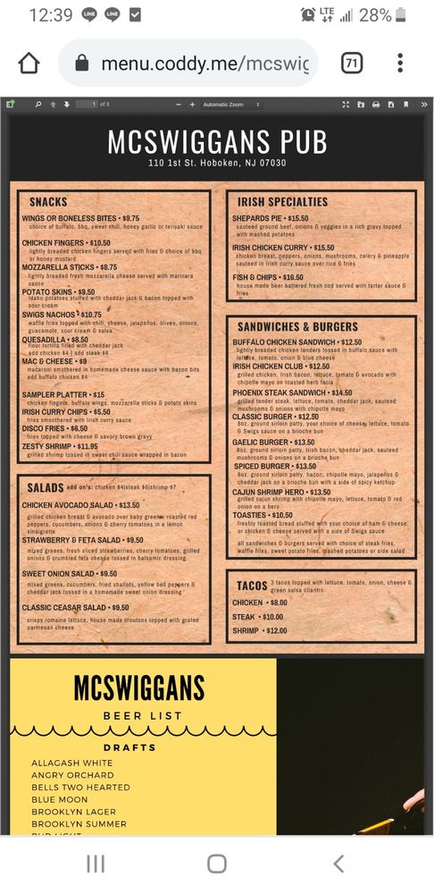 Welcome to McSwiggan's Pub, your quintessential American drinking and dining spot, nestled in the heart of Hoboken, NJ. This lively pub prides itself on a vibrant atmosphere, perfect for gatherings and late-night escapades. With outdoor seating and a full bar, it becomes a local favorite, especially on weekends with live music and special events.